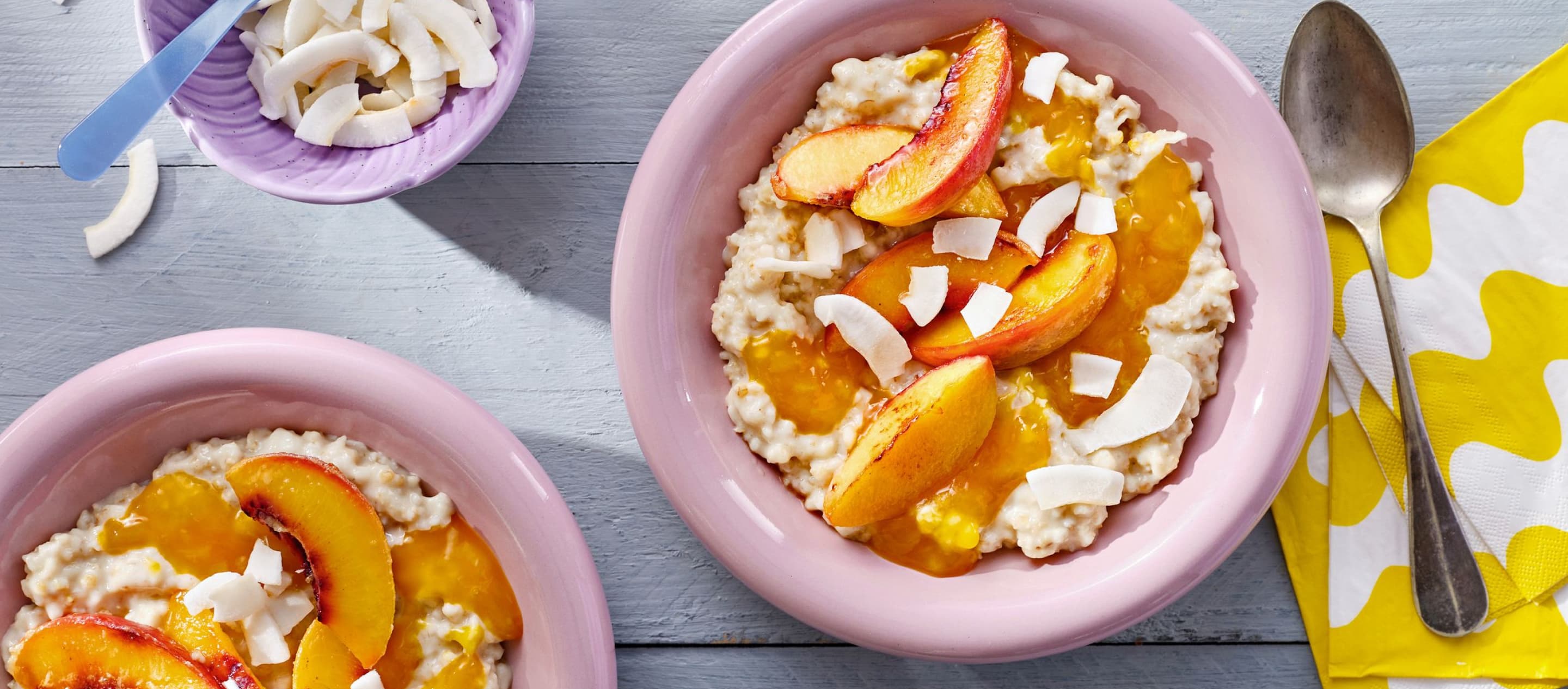 Herrlich fruchtig und einfach lecker – unsere neue Porridge-Sorte Pfirsich-Maracuja ist da! Süßer Pfirsich trifft auf goldene Maracuja – und sorgt für echte Good-Mood-Momente. Ob als gesundes Frühstück am Morgen, als Power-Snack zwischendurch oder leckere Lunch-Bowl – unser Porridge sorgt immer für den richtigen Wohlfühlmoment. Lust auf noch mehr köstliche Geschmacksrichtungen? Dann entdecke auch unsere anderen Sorten – und sichere dir weiter unten mit etwas Glück bei unserem Gewinnspiel ein prall gefülltes Porridge-Paket.