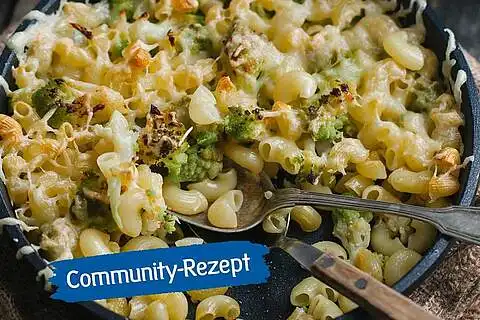 Für den Brokkoli-Nudel-Auflauf zunächst den Brokkoli in Röschen schneiden, gründlich abwaschen und für 12 Minuten in Salzwasser garen lassen.