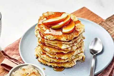 Etwas Öl in einer Pfanne erhitzen und den Teig darin portionsweise (ca. 2 EL) von beiden Seiten zu Pancakes ausbacken. Pancakes stapeln, nach Geschmack mit Ahornsirup beträufeln und mit Apfelmus servieren. Fertig sind unsere gesunden und leckeren Apfel Pancakes. Guten Appetit!
