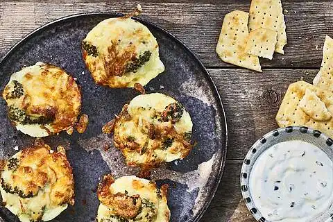 Etwas Reibekäse in die Muffin Mulden geben und mit der Brokkoli Mischung auffüllen. Den übrigen Reibekäse darüber streuen. Im Ofen (Mitte) in 20-25 Min. goldbraun backen.