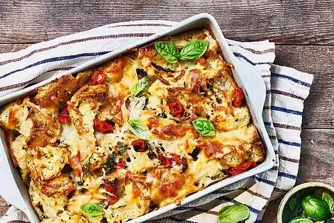 Für den Auflauf mit getrockneten Tomaten den Backofen auf 190 °C (Ober-/Unterhitze) vorheizen.