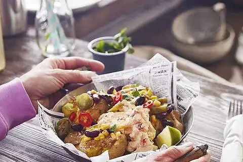 Die Kartoffeln aus dem Ofen nehmen und mit der Bohnen-Mischung toppen. Eine Prise Salz und den PaprikaQuark auf die Smashed Potatoes geben und servieren. Fertig ist die leckere Rezeptidee aus der mexikanischen Küche.