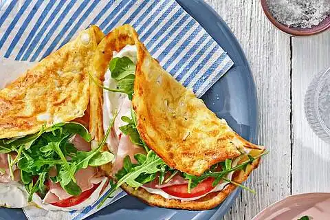 Tomate und Rucola waschen und trocken tupfen Die Tomate in Scheiben schneiden. Die Protein Wraps mit FrühlingsQuark bestreichen und mit Tomate, Rucola und Schinken belegen. Zum Schluss zusammenklappen und genießen.
