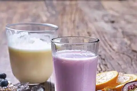 Kefir Drink und Limonade verrühren und die Gläser damit aufgießen.