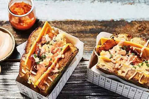 Für die Egg Drop Sandwiches 2 Scheiben Toast mit Sriracha-Mayo bestreichen. Mit Bacon, Ei und Kimchi belegen und je eine zweite Toastscheibe auflegen. Fertig ist der leckere TikTok-Frühstückstrend.